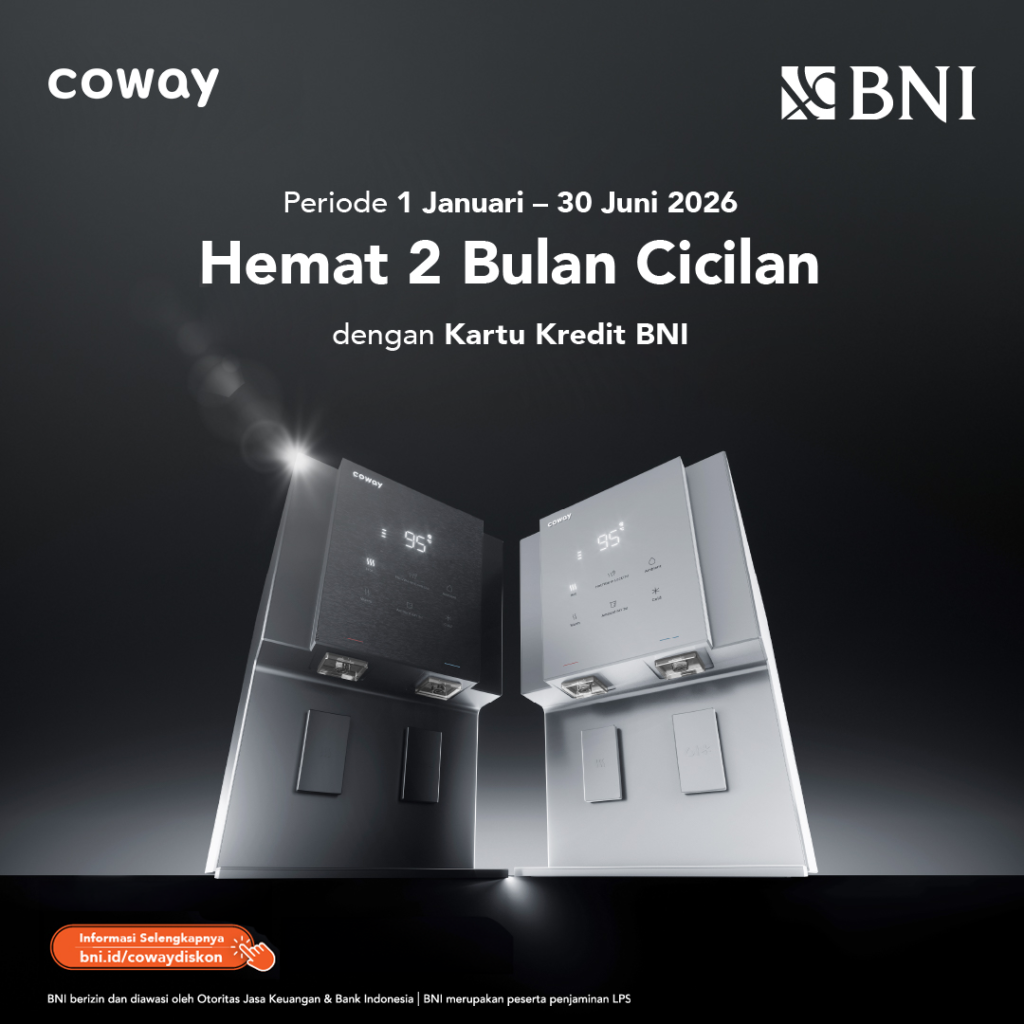 Nikmati gratis 2 bulan cicilan untuk setiap pembellian produk coway dengan menggunakan autodebit kartu kredit bank BNI